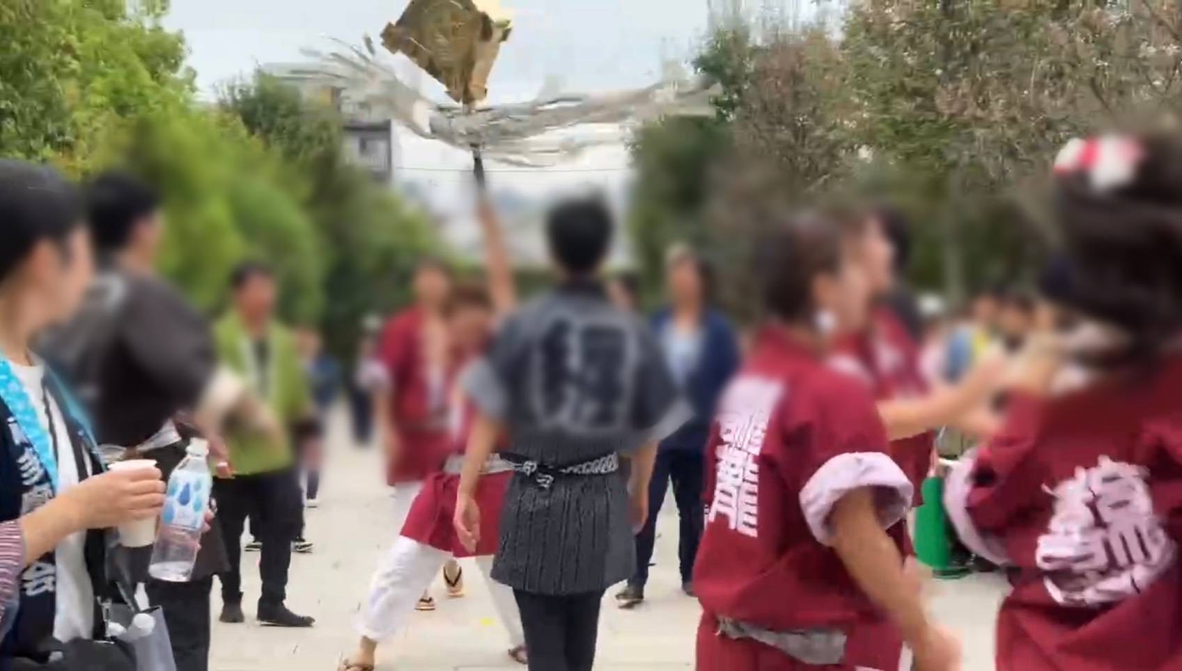 重い万灯を担いで一生懸命行進している姿を見て、私たちも精一杯大きな声で応援しました。