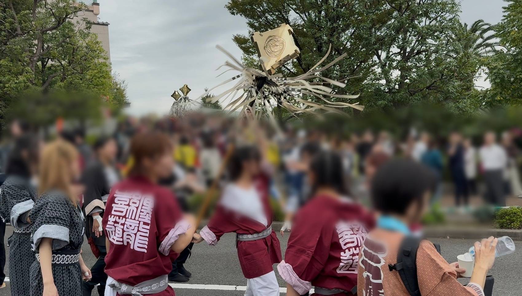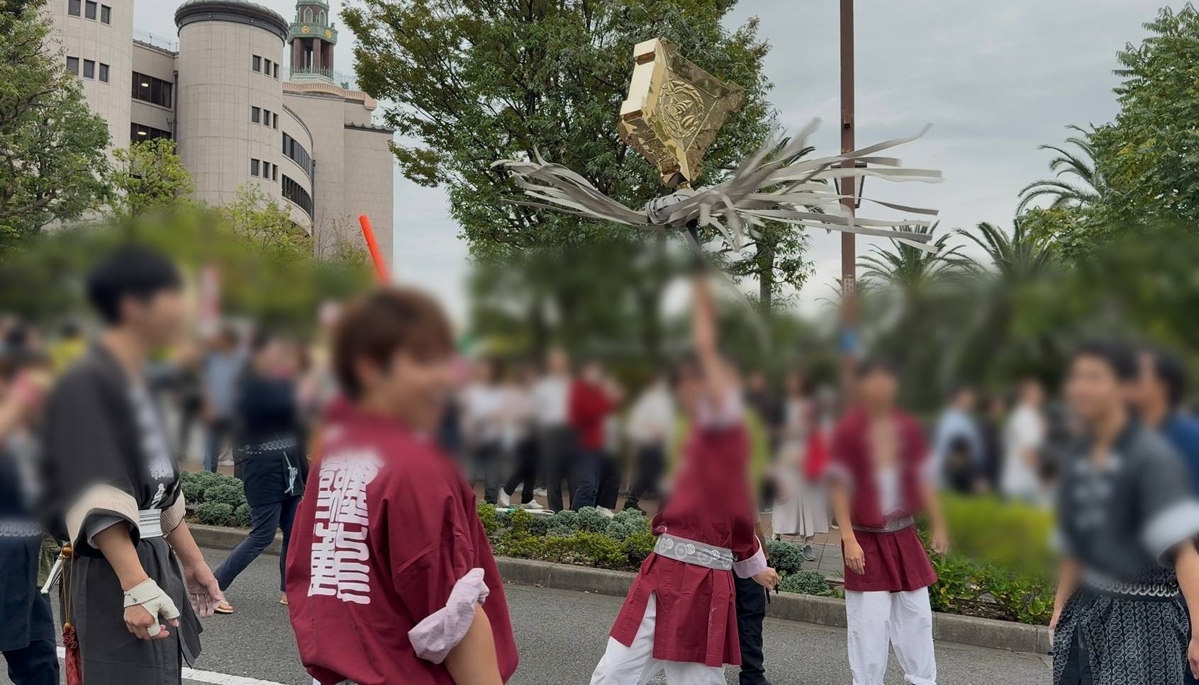 プラカードが多摩支教区の先頭を飾り、その後ろに纏、鳴物、うちわが続きます!