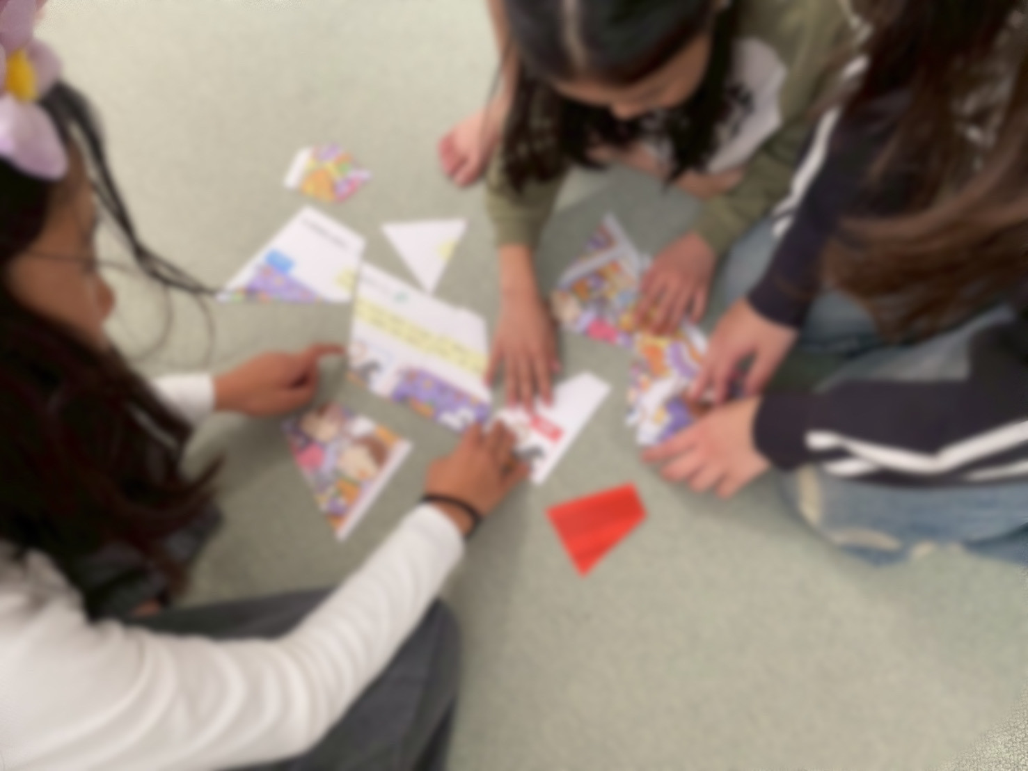 みんな上手に蜘蛛の巣を避けてパズルを完成させました!