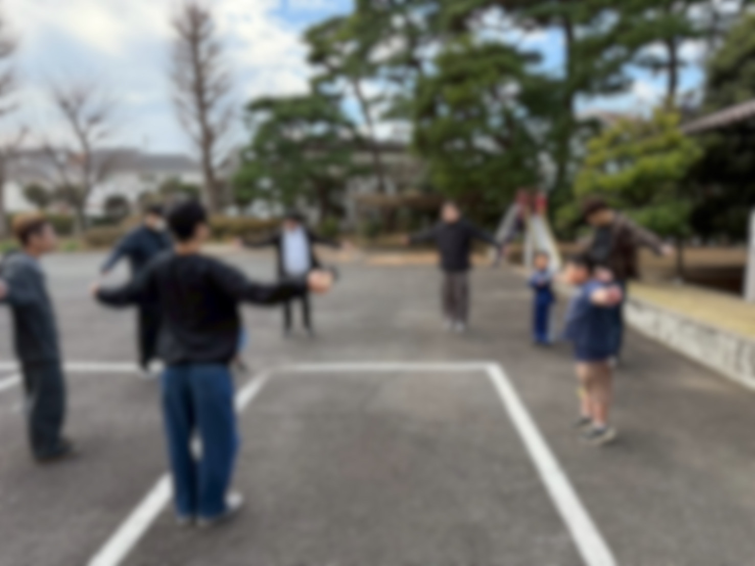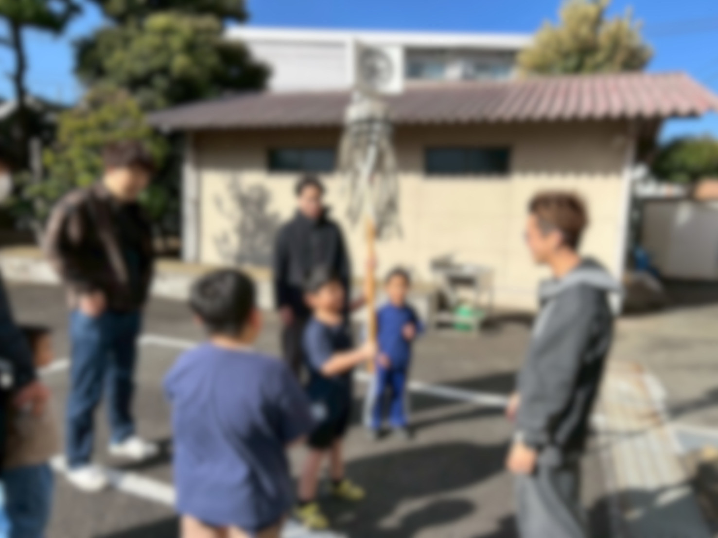 まずは朝から、子供たちと一緒に纏の練習からスタート。